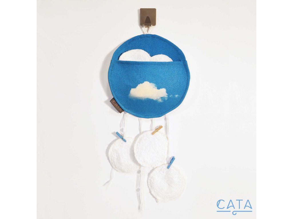 A felső zsebben tárolhatod a korongokat. Közvetlen használat után érdemes átmosni a korongokat kézzel, kevés szappannal. Ez után a kis csipeszek segítségével a tartó szalagjaira tűzheted, ahol megszáradnak a következő alkalomra. Vagy gyűjtheted is őket itt, mielőtt a mosógépbe teszed a korongokat.