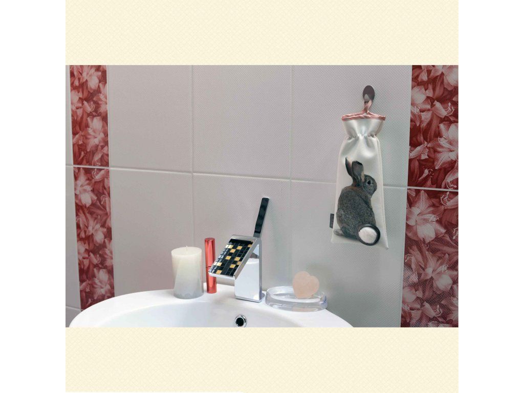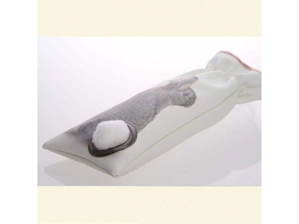 A nyuszis vattapamacs tartók textilbőrből készülnek, szatén ferdepánt díszítéssel.